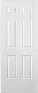 Puerta de Acero diseñada con un Estampado de 6 Paneles Mixta: Una cara estampada con 6 paneles y otra cara lisa.